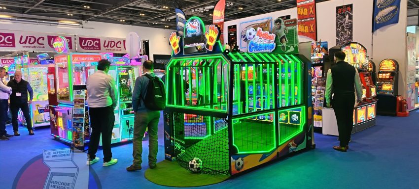 While it’s now a long time since their glory days of representing Taito, SNK, Capcom and various others, storied UK distributor Electrocoin are still hanging in there, with more of a focus on redemption and their fruit machine repertoire. One of those, a different videmption interpretation of ICE’s World Football Pro concept with only one caged ball instead of several dispensables, can be seen below here: