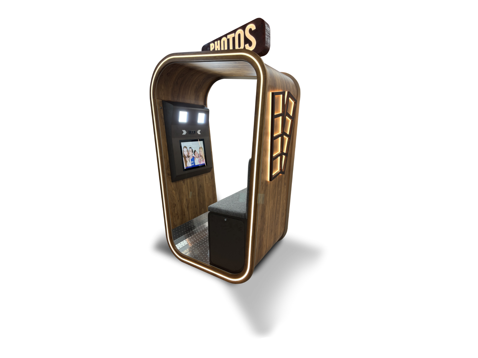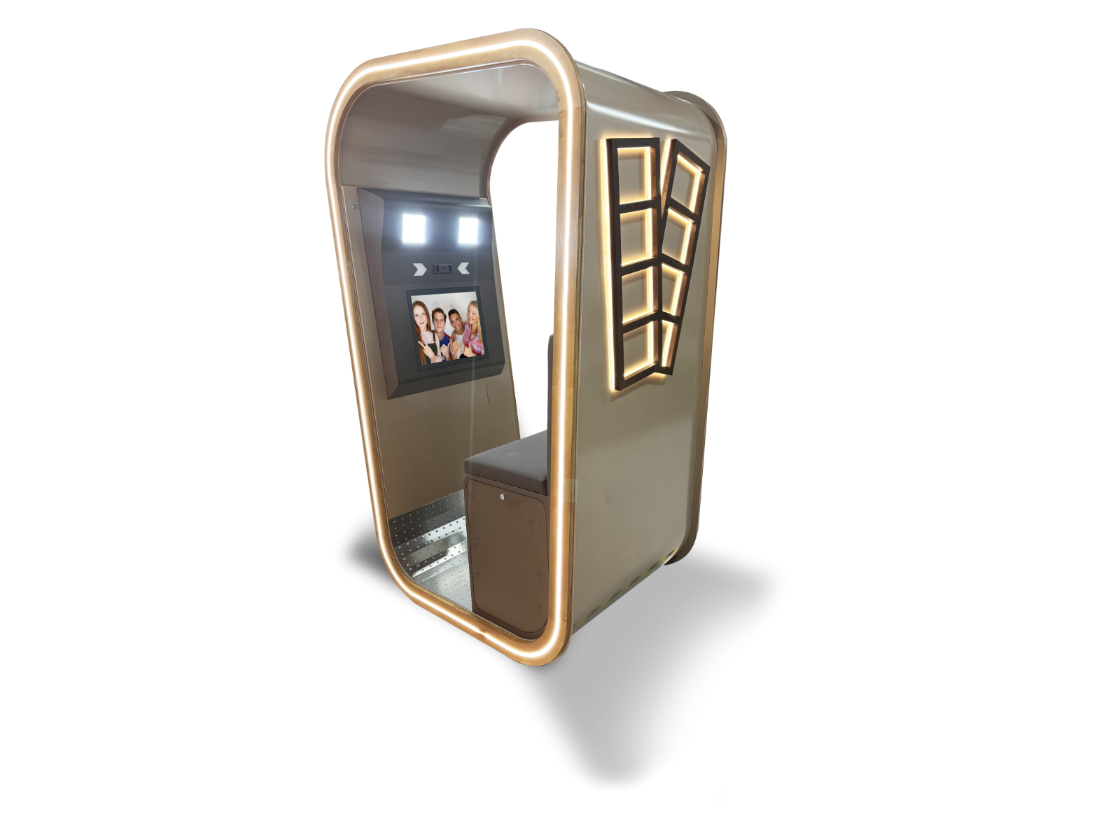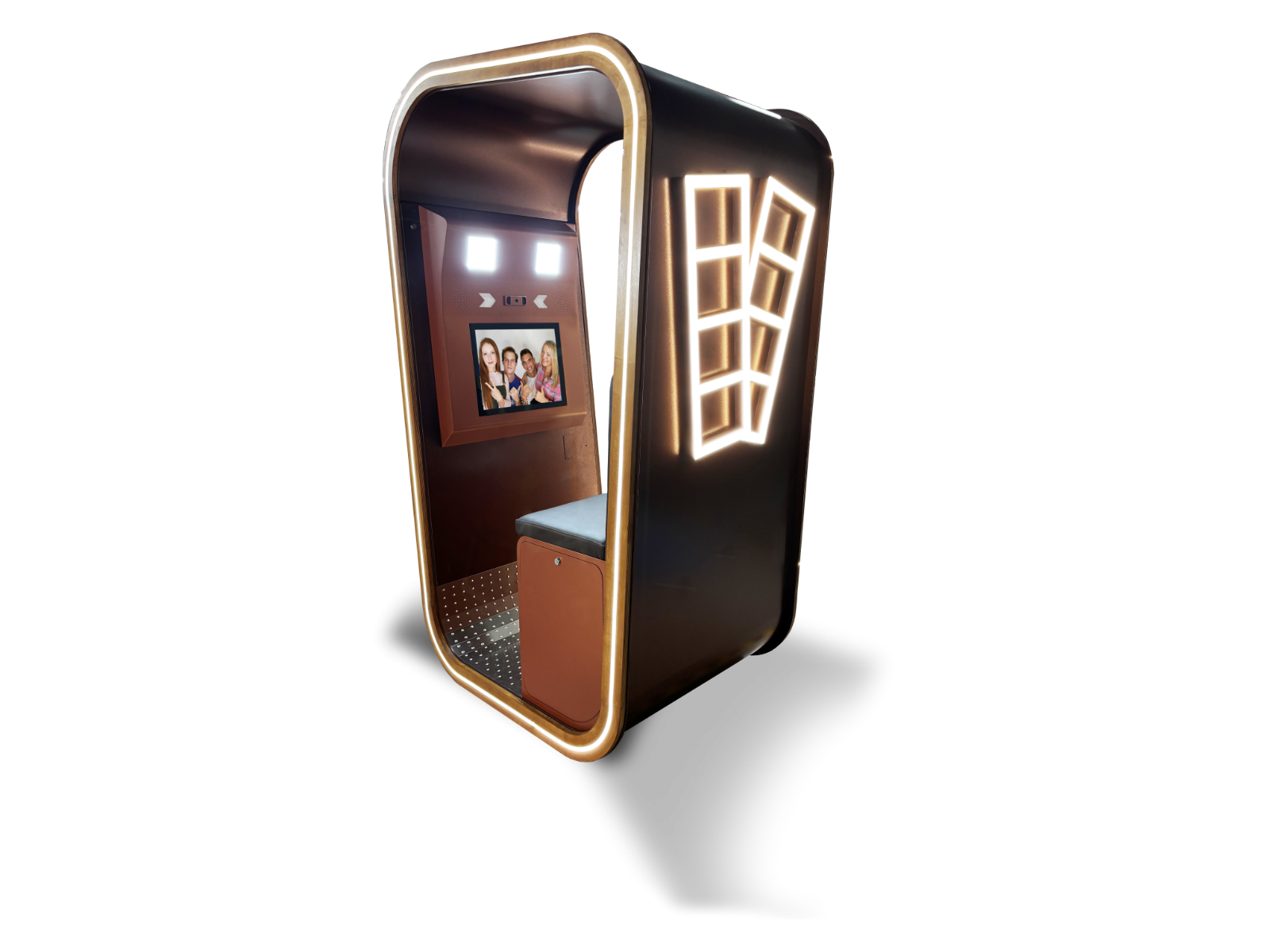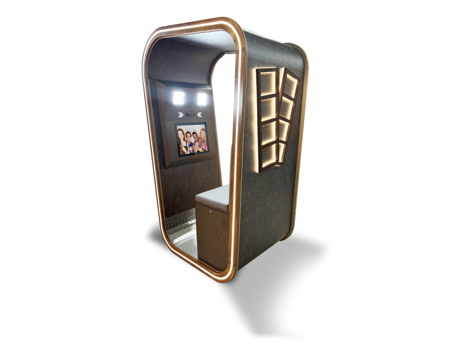 Graceful curves, noble materials, luxurious fabrics, and ambient lighting come together in perfect balance, creating a piece that’s not just photo booth, but an experience of pure exclusivity.