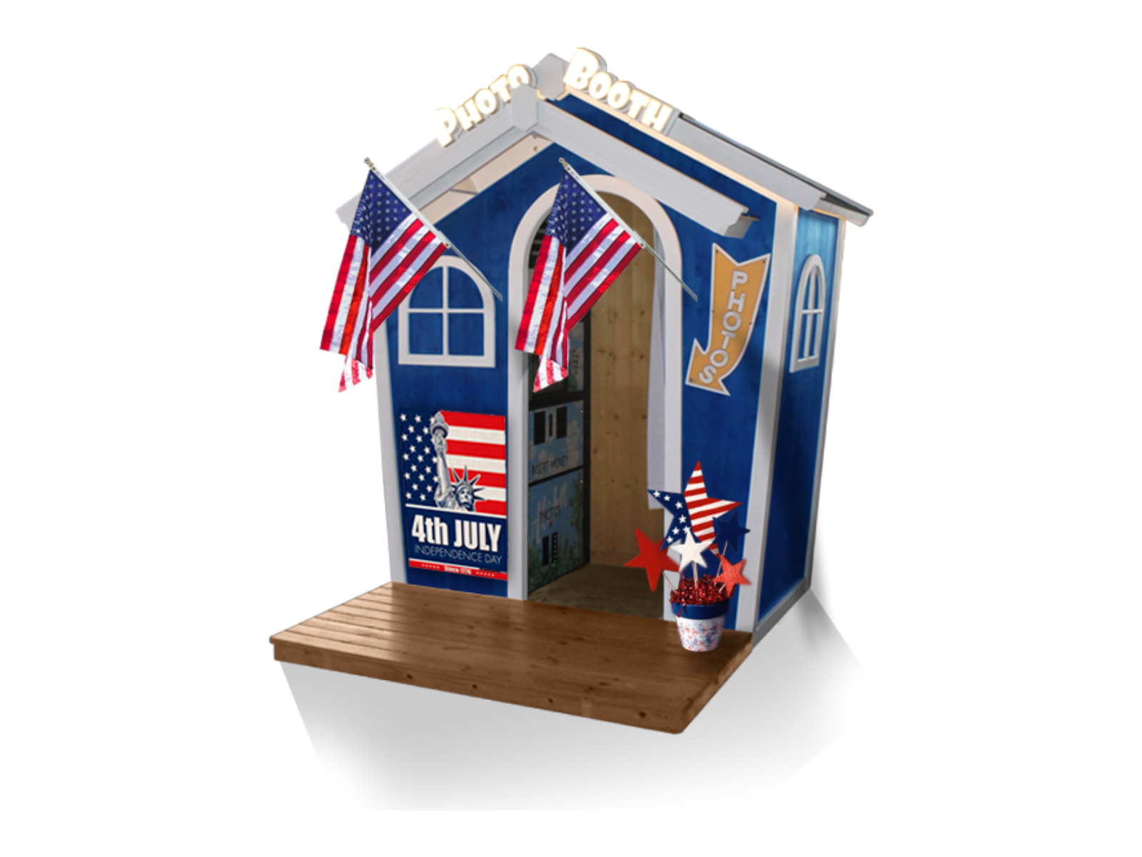 • Fully Customisable Experience: The booth’s exterior and internal themes can be tailored to match specific seasons, holidays and events such as Christmas, Valentines Day, Halloween, Fourth of July, Surfing and Farmhouse.