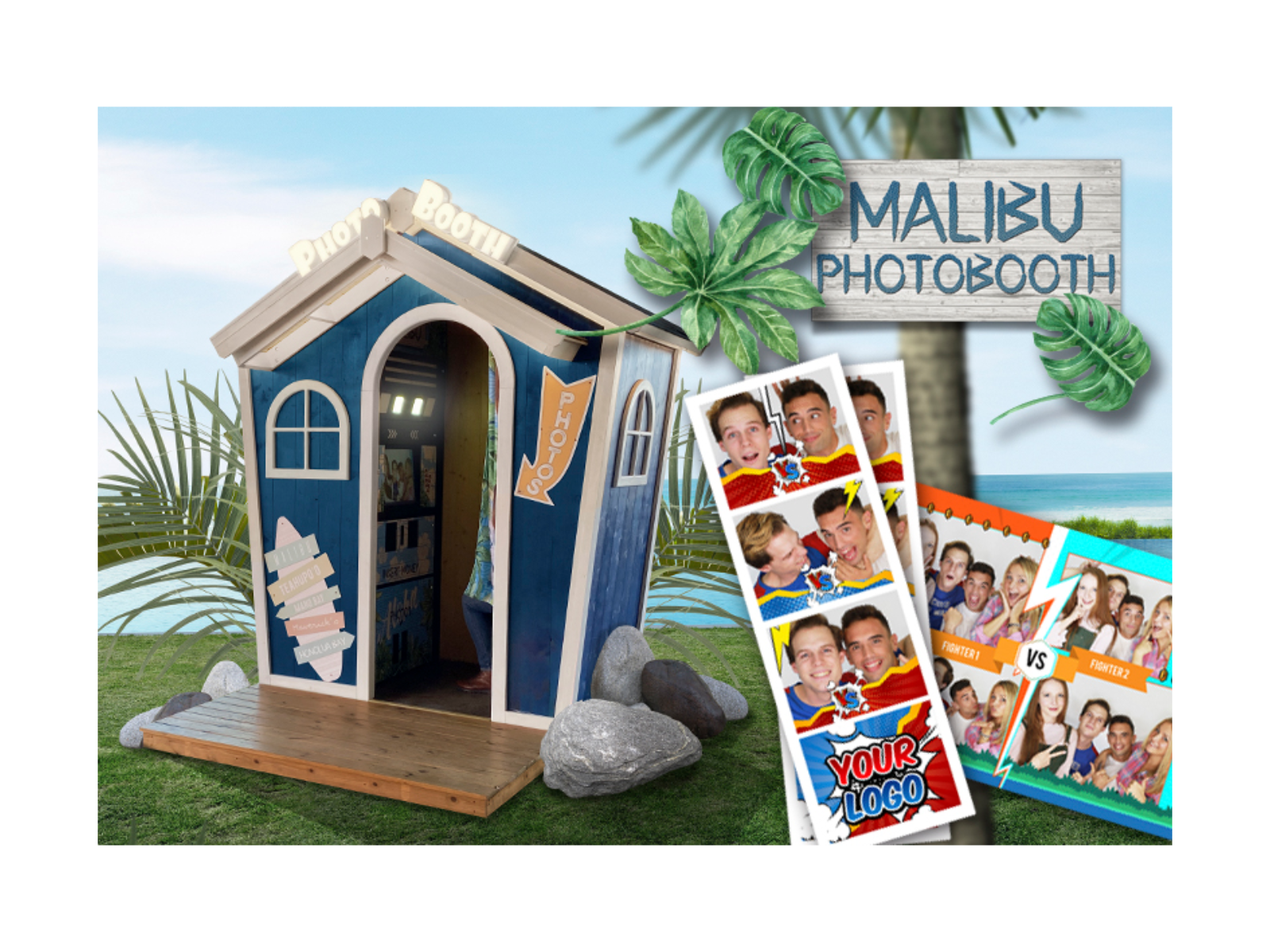 Built as a charming, real wood house, this Malibu Outdoor photobooth combines durability with sophisticated technology to deliver “Gold-Class outcomes” and memorable photo opportunities.